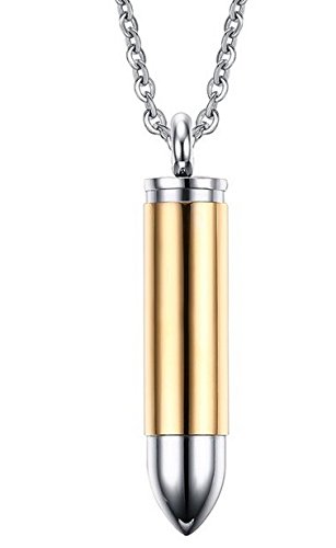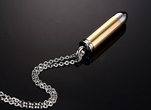 -. Title : Blowin Polished Bullet Cremation Urn Pendant Memorial Keepsake Stainless Steel Necklace 22" Chain, Silver Gold