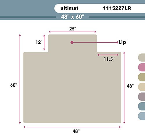 Floortex Ultimat Polycarbonate Chair Mat for Carpets Over 1/2" Thick, 48"x60", Rectangular with Lip (1115227LR)