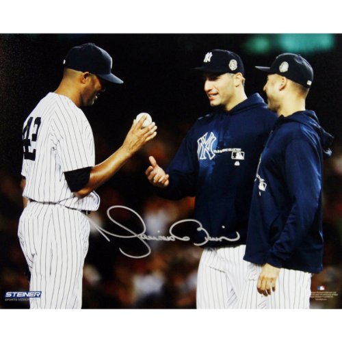 Mariano Rivera Mound Close Up Hand Ball To Pettitte Derek Jeter At Yankee Stadium Autographed 8 Inches By 10 Inches Photo