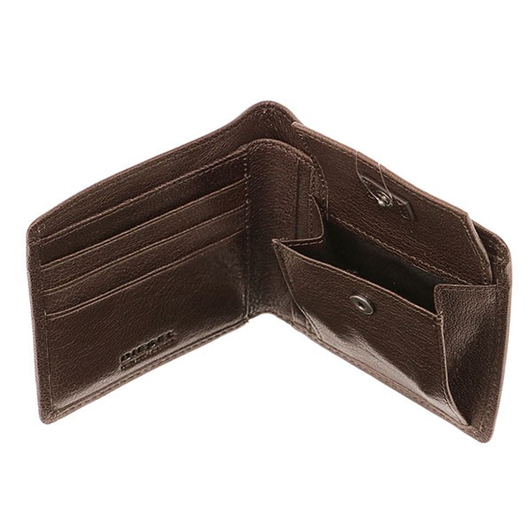 ディーゼル DIESEL メンズ 二つ折り 短財布 小銭入れ付 X03925-PR271-T2189  商品仕様:最大(約):縦9.5cm×横11.5cm×幅1.5cm、重量:68g  札入れ仕切り:0、小銭開閉:ボタン式、カード入れ:×3、ポケット:×3