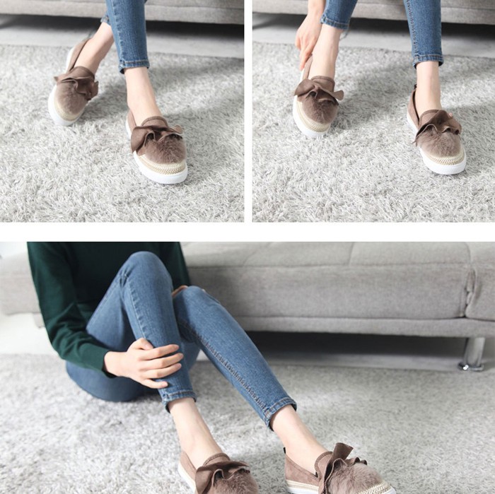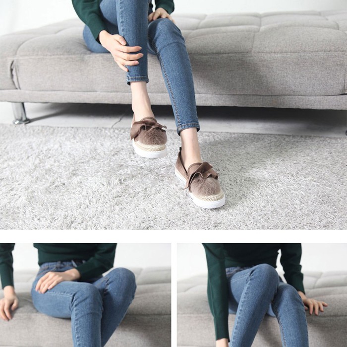 商品名:スリッポン レディース スニーカー フェイクファー 2017 秋冬 ファッション 靴 婦人靴
