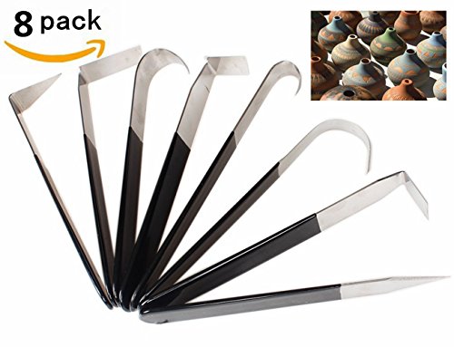 8 Pack Pottery Tools, HityTech Stainless Steel Carving Shaping Knives Clay Sculpture Hand Tools Craft Trimming Artist Ceramic Tools Set For Carving, Shaping, Clay Sculpture, Modeling