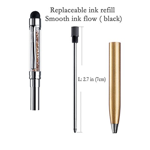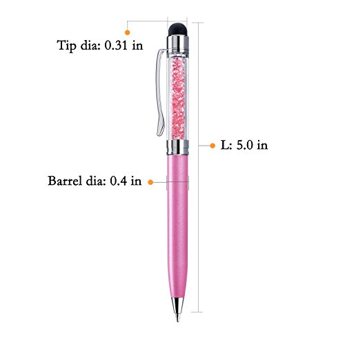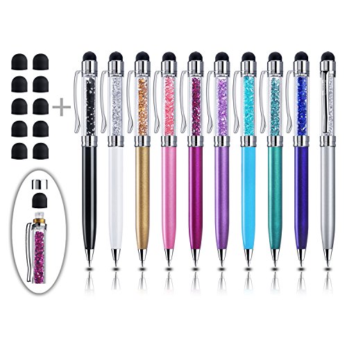 10 Different colors crystals separately filled in upper half chamber of styluses tipped with durable soft rubber resistant screens from scratches, fingerprints and grease.