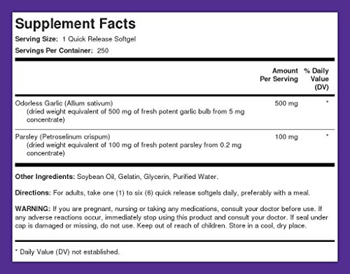 - Title : Odorless Garlic & Parsley 250 Softgels