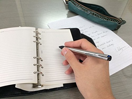 -. Feature : Multi-colour ballpoint pen / Made of stainless steel with cyclical matt finish / Metal button and point / With sP.R.Ing-mounted steel clip / Push mechanism with integrated clip-button unit.