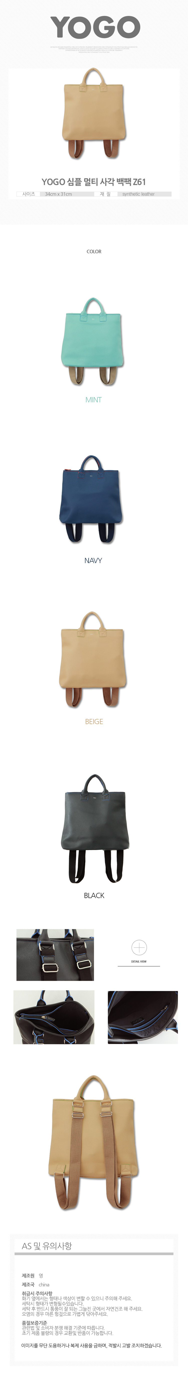 YOGO simple multi 사각백팩 z61