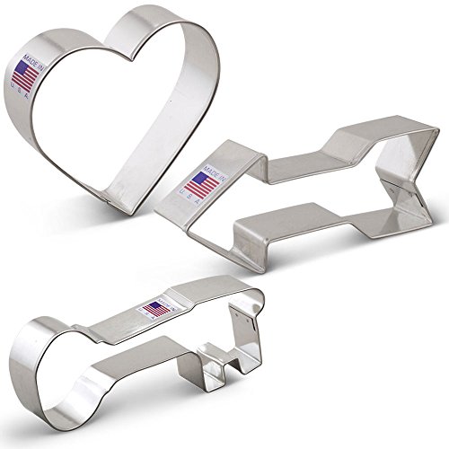 MADE IN THE USA by Ann Clark Cookie Cutters in Rutland, Vermont. Family owned and operated since 1989, Ann Clark Cookie Cutters has grown from a small gift company to the largest manufacturer of cookie cutters in America. We offer over 2000 shapes and sizes of metal cookie cutters to suit every need. Shapes Included: Heart (3 1/8" x 3 3/8") Arrow (1 5/8" x 4 1/2") Key (2 1/2" x 5 1/2")
