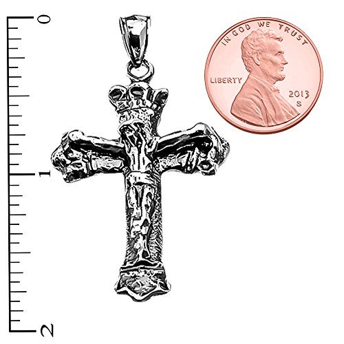 -. Feature : 925 sterling silver textured crucifix necklace pendant / comes with free special gift packaging / made in the USA yet offered at factory direct jewelry P.R.Ice