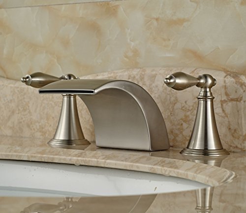 -. Title : Rozin Widespread 3 Holes Bathroom Basin Faucet Brushed Nickel