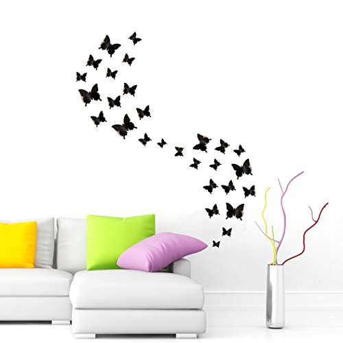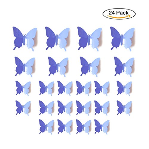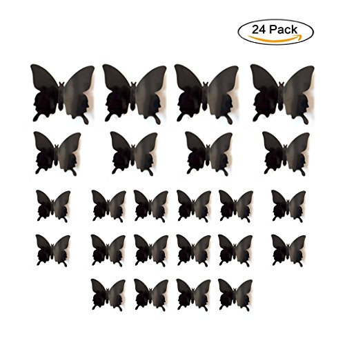 -. Feature : Package: 24 pcs(small: 16 pcs, medium: 4 pcs, large: 4 pcs) Include tape.SIZE(width): S-2.56"/6.5cm, M-3.15"/8cm, L-4.33"/11cm / Easy to stick: apply to dry, clean and smooth surfaces; clean the place you want to stick the butterfly, just peel the paper on the butterfly, paste them, and make sure their wings lift up. / Good decoration gadgets: they can be applied to decor a theme party, butterfly museum embellishment, children room, garden parties, photography background, Christmas, wedding, birthday, etc. / Use for a long time: butterfly wall decals is made of PVC material, durable, anti-dust, convenient for you to clean which can make the butterfly last longer. / 100% money back guarantee:When you order our 3D Butterfly Wall Decals today, you're protected by a 60 day, no-questions asked money back guarantee. TOTALLY RISK FREE, why not give it a try .