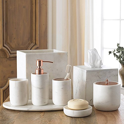 - CRAFTED FROM CALCATTA MARBLE: The distinct veining and electroplated rose gold finish make our Pietra bath accessories a stunning addition to the modern bathroom.