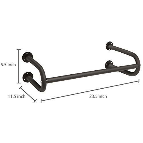Set of 2 Black Metal Wall Mounted Bathroom Hanging Towel Bar, Bedroom Clothing Rod Rack