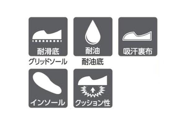 すべりにくく油に強いスニーカータイプ。クッション性にも優れた疲れにくい厨房靴です。