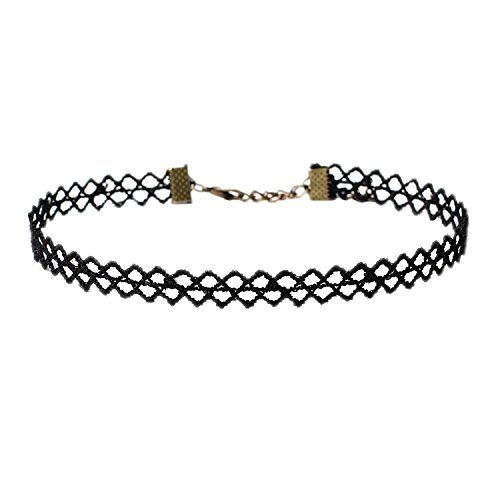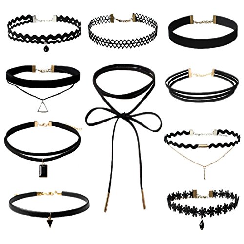 Wenseny 10 Stuck Damen Hoker Halskette Velvet Spitze Choker Halsketten Tattoo Punk Gothic Halsband, Schwarz