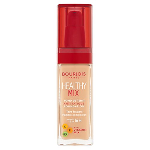 -. Binding : Misc. -. Brand : Bourjois -. Feature : Bourjois NEW Healthy Mix foundation had just got even better! / Give your skin a radiance boost and leave it looking flawless for up to 24 hours! / Bourjois' new Radiance Reveal Healthy Mix foundation is enriched with a fruit therapy formula to enhance your complexion. / AP.R.Icot for radiance, Melon for hydration, Apple to protect your youth. / It is also enriched with crystalline pigments to even out the complexion while letting in the natural light for that healthy looking glow. -. IsAdultProduct : 0 -. Label : Bourjois France -. Manufacturer : Bourjois France -. MPN : Healthy Mix -. NumberOfItems : 1 -. PackageQuantity : 1 -. PartNumber : Healthy Mix -. ProductGroup : Beauty -. ProductTypeName : BEAUTY -. Publisher : Bourjois France -. Size : Full Size -. Studio : Bourjois France -. Title : Bourjois Fond de Teint Healthy Mix Foundation New