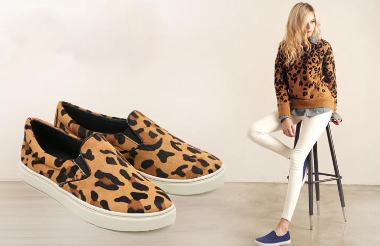 New Fashion Women Slip On Sneakers Comfy Flats Preppy Faux Calf Hair Shoes Loafers