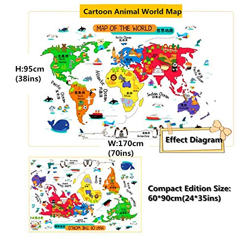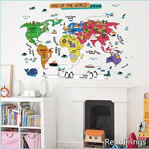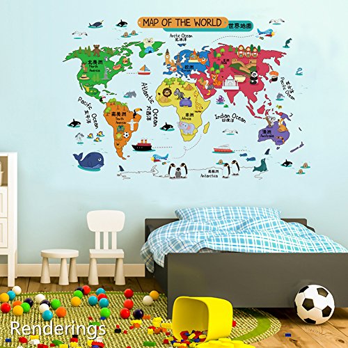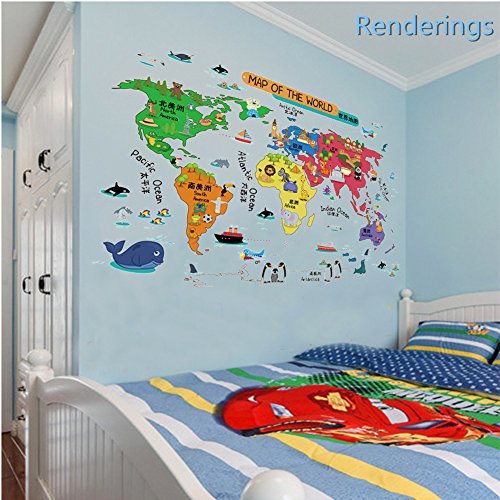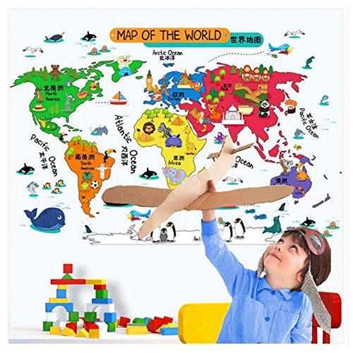 -. Title : World Maps Wall Decals Stickers,Colorful Animal/Famous Building Map Nursery Kids Wallpaper Home Decor Art by JiazuGo (World Map)