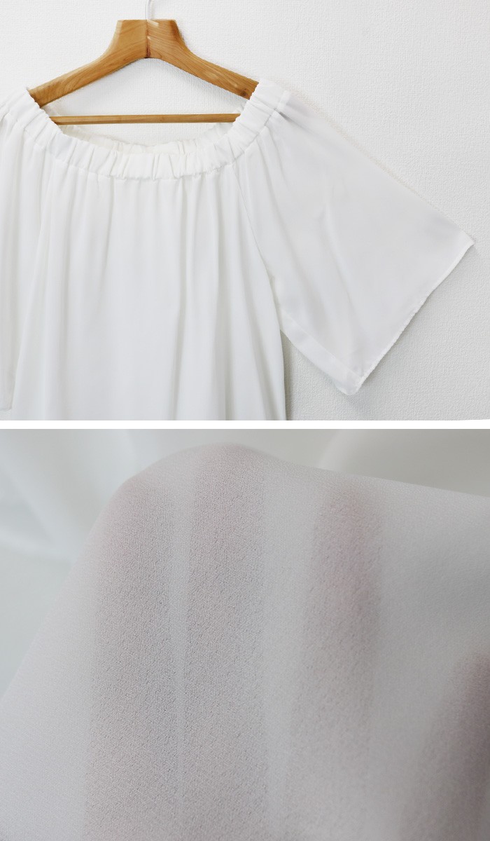 背中部分、上部はカットソー、下部はシフォンジョーゼットで、とろみのある落ち感がフェミニンな仕様に。