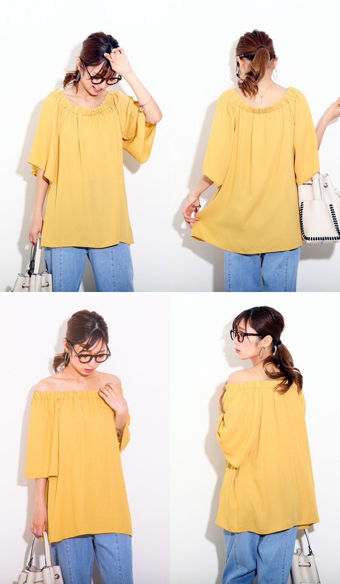 ゆるやかなVネックに、フロント部分はタック入りでクシュっとしたニュアンスに。