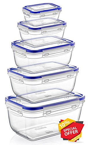 Lock&Fresh BPA Free Plastic Sealed food Storage Container Set 5 pcs 14 oz. - 136 oz.
