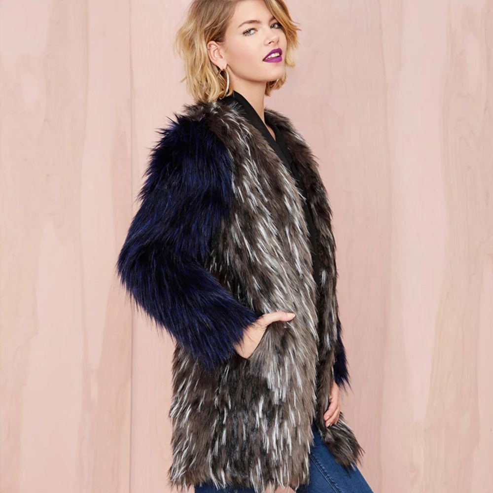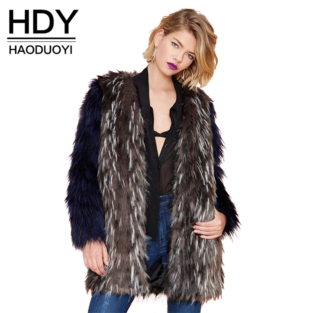 HDY Haoduoyi Multicolor Women Coats Long Sleeve Faux Fur Double Pockets Coats For Women Female Patchwork Loose Casual Coats | |||||||||||||||||||||||||||||||||||||||