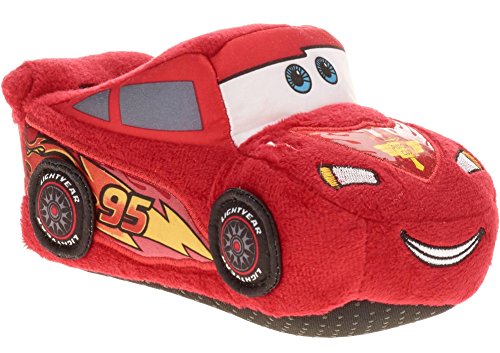 Disney Boy's Lightning McQueen Cars Slippers. He's ready to win the Piston Cup in these Cars toddler boy's slippers from Disney. Soft and cozy, these slippers are designed to look like Lightning McQueen with a cushioned footbed that gives him a smooth ride. The non-slip grippers on the outsole keep him safe as he zooms around the house.Feature