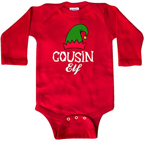 Product Description Show your place in your family of elves! Cousin Elf with Elf Hat in White Long Sleeve Creeper, perfect for a coordinated family Christmas. 0