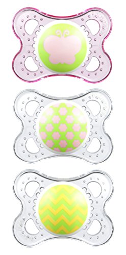 -. Binding : Baby Product -. Brand : MAM -. Color : Girls -. Department : baby-girls -. EAN : 0845296017338 -. Feature : Symmetrical orthodontic nipple is ideal for baby's jaw and teeth development / Silicone nipple with SkinSoft texture that feels more like mom is easily accepted by babies / Textured surface and multiple small openings on the pacifier shield allow air to circulate and baby's skin to breathe / Easy hold button makes it easy to grab and attach to a pacifier clip -. Label : MAM -. Manufacturer : MAM -. Model : 1733-012-0-1 -. MPN : 1733-012-0-1 -. NumberOfItems : 1 -. PackageQuantity : 1 -. PartNumber : 1733-012-0-1 -. ProductGroup : Baby Product -. ProductTypeName : BABY_PRODUCT -. Publisher : MAM -. ReleaseDate : 2017-02-15 -. Size : 0-6 Months -. Studio : MAM -. Title : MAM Clear 3 Piece Orthodontic Pacifier, Girls, 0-6 Months -. UPC : 845296017338