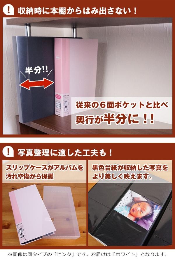 | 仕様 | ■溶着式製本 ■台紙:ポリプロピレン製L判3段×2列ポケット3層黒エンボス台紙20枚 ■写真収納枚数:L判240枚 ■背見出しポケット付 ■スリップケース入 |