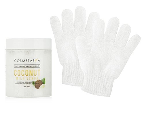Now, go ahead and luxuriate in the duo exfoliating and rejuvenating power of Cosmetasa's Coconut Body Scrub and Exfoliating Glove!