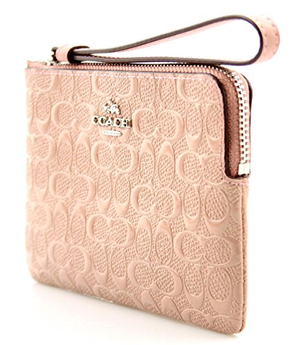 (Coach)/Accessories/Handbags/DIRECT FROM USA/COACH Signature Debossed Corner Zip Wristlet in Blush