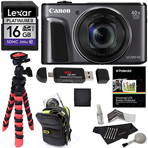 -. Title : Canon PowerShot SX720 HS (Black) Camera, Camera Case, Lexar 16GB UHS, Memory Card Wallet, Ritz Gear Tripod, Cleaning Kit, Card Reader / Writer, Polaroid Screen Protector & Accessory Bundle