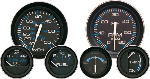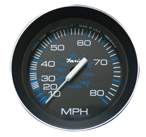 ReleaseDate : 2013-04-01 Studio : Faria Publisher : Faria Binding : Automotive Product Description Perimeter-lighted black dial with stylish blue and white graphics. Black aluminum bezel with burnished edge. Contoured white pointer. Flat glass lens. American metric scales icons. 0
