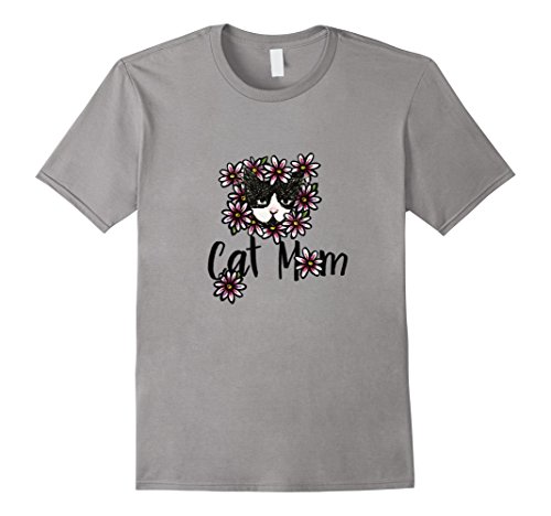 -. Title : Cat Mom t-shirt cat person tuxedo cat artwork floral cats