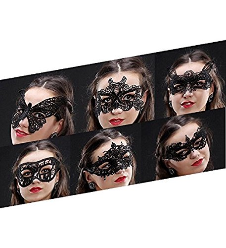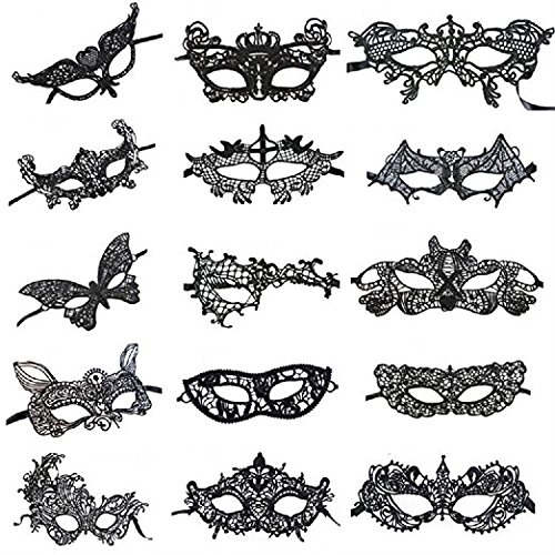 HOMEFUN Women's Sexy Black Lace Venetian Masquerade Masks Halloween Party Pack of 15 Pieces