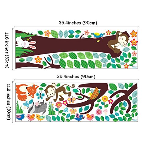ElecMotive Cartoon Forest Animal Monkey Birds Fox Rabbits Butterfly Tree Flowers Nursery Wall Stickers Wall Murals DIY Posters Vinyl Removable Art Wall...