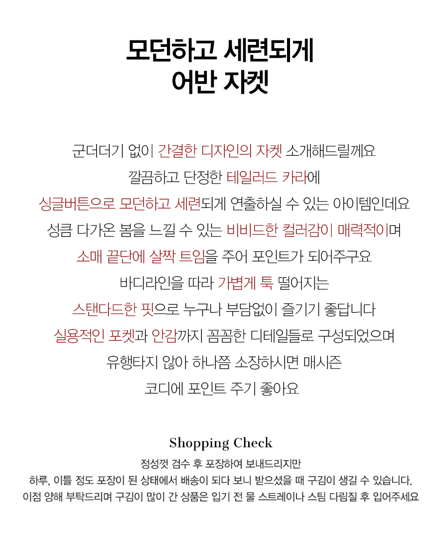 | 안감탈부착(Lining detachable) | 불가능 |