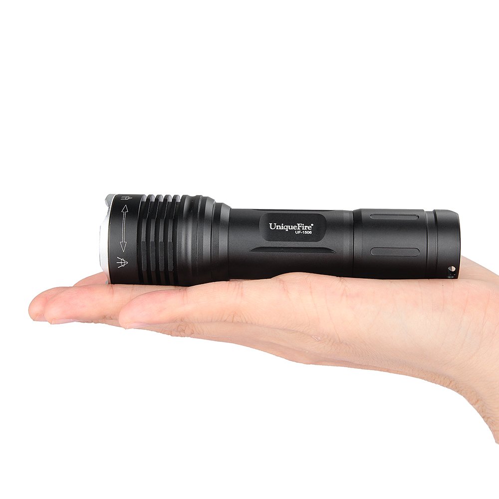 】 By sliding the head of the main unit, it is possible to use wide beam which is intended to illuminate a short distance in a wide range and spot beam which illuminates far distance far.