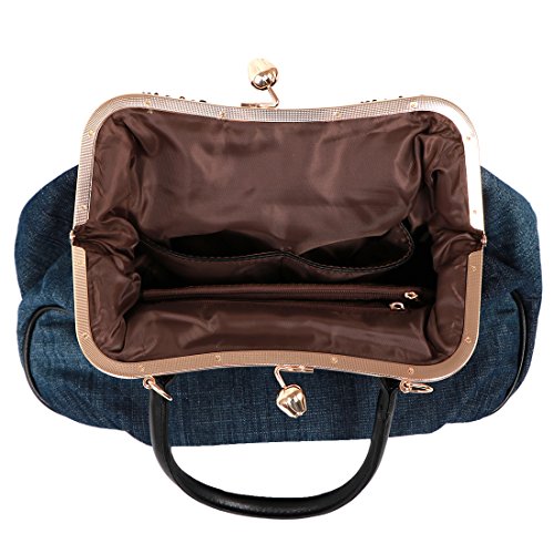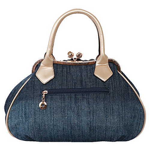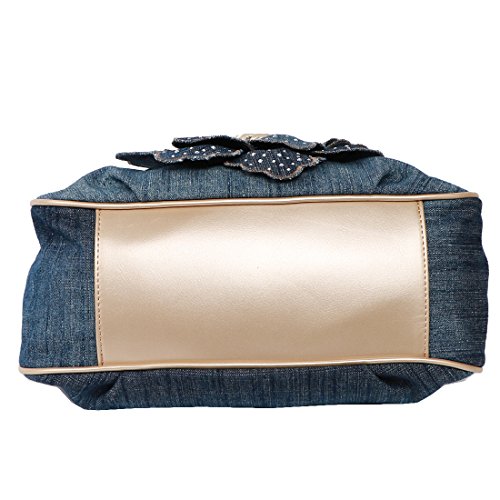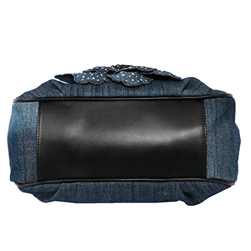 -. Brand : kilofly -. Department : womens -. Feature : Great Value - Comes with an adjustable strap and a KF money clip as shown in images / Organized Interior - Has 2 open pockets and 1 zippered compartment inside / Detachable & Adjustable Strap - Different ways of wearing; Can be worn as a crossbody / Kiss-Lock Closure - Fancy lock secures all your essentials safe inside / Approx. Size: 38 x 13 x 28 cm / 15 x 5 x 11 in (L x W x H) -. Model : AWP385 -. MPN : AWP385 -. PartNumber : AWP385 -. ProductGroup : Shoes -. ProductTypeName : HANDBAG -. Title : kilofly Women's Large Flower Denim Satchel Handbag Shoulder Bag + KF Money Clip