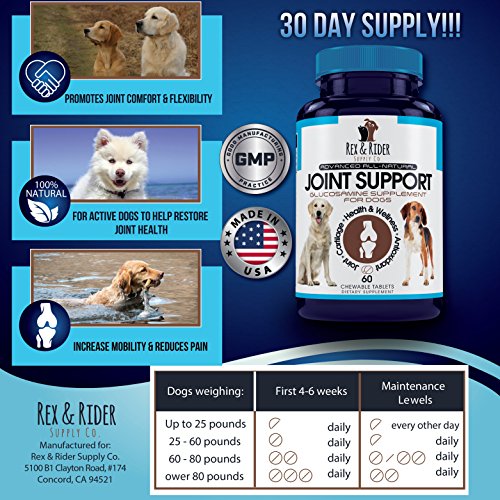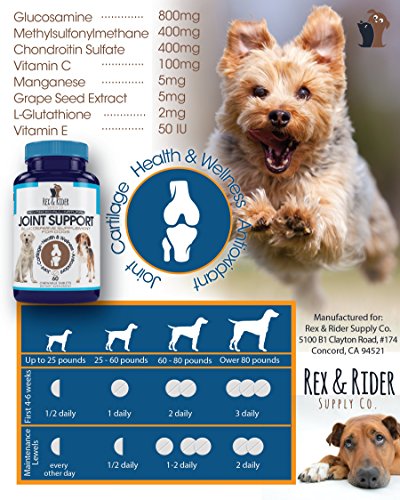 HELPS WITH ARTHRITIS & HIP DYSPLASIA - Rex & Rider Supply Co. advanced all-natural joint support formula is perfect for younger arthritic onset, older dog's with arthritis pain & inflammation, and is an ideal and effective all natural supplement for both large and small breeds