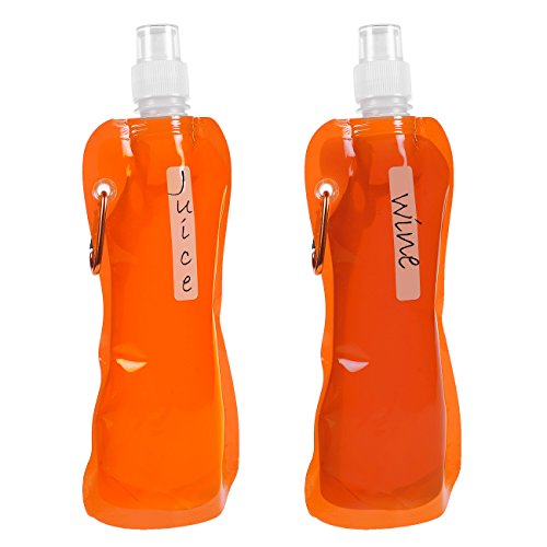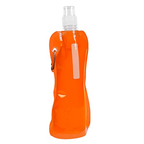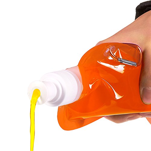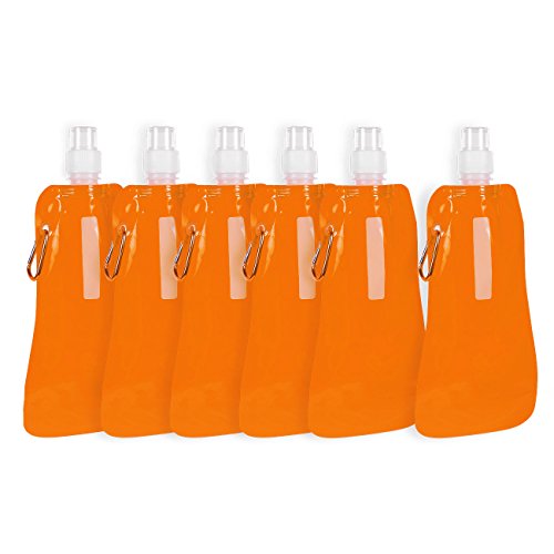 Collapsible Water Bottle - 6-Pack 16 oz Foldable BPA Free Canteen Drinking Bottles with Carabiner for Travel, Orange