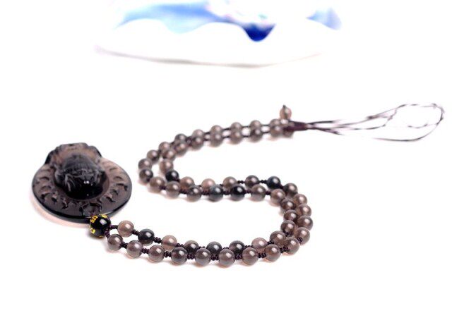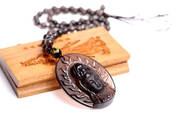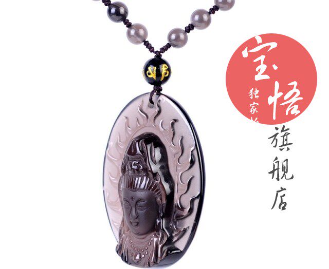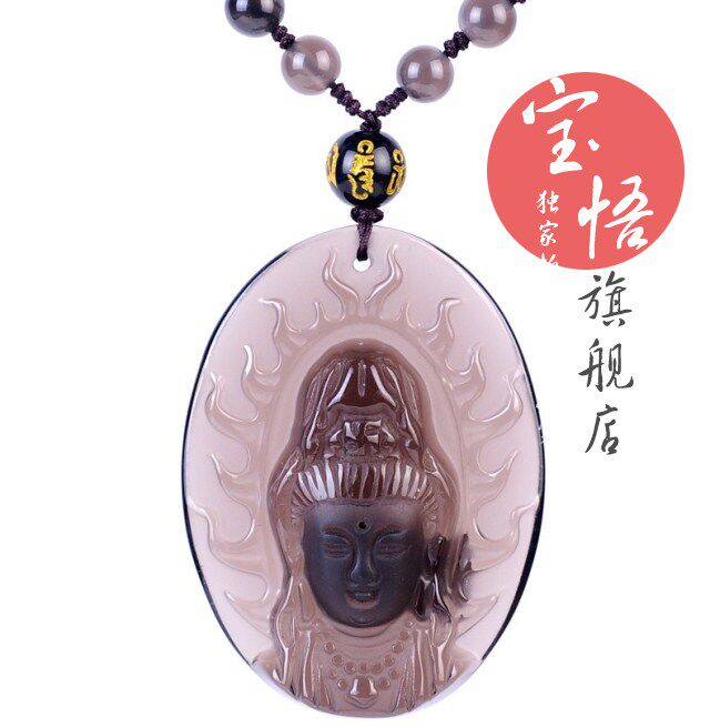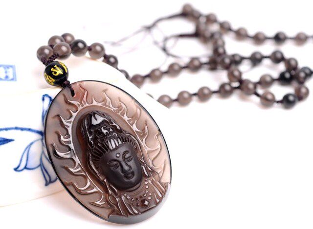 开光冰种黑曜石大势至菩萨吊坠属马本命佛守护神吊坠