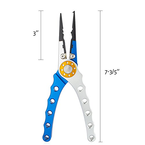 This Fishing pliers is necessary for fishermen to remove hooks and cut braid line. Material: Stainless Steel Jaws; Aluminum Alloy Handle; Tungsten Carbide Cutters. Comes with Nylon Belt Pouch and a 12in Coil Lanyard, which is convenient for fishermen to store and use safely. Weight : 0.138 lbs Size : 7.7*2.2*0.5 inches Included: 1*FISHING PLIERS, 1*BELT SHEATH, 1*COIL LANYARD 0 |