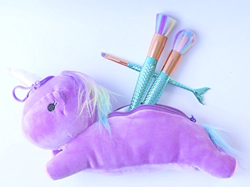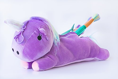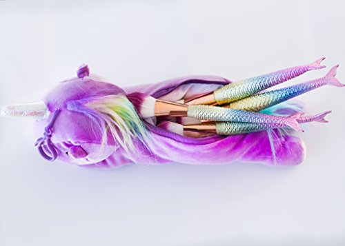Unicorn Makeup Bag, Stuffed Unicorn Animal Pencil Case, Kids Cosmetic Case (Purple)