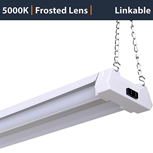 LED 4' Utility Shop Light-40W, 5000K, Linkable, Frosted Lens, 4100LM, Replaces 4 Foot Fluorescent, Garage Shoplight Ceiling Fixture, Pull Cord Chain, Plug In