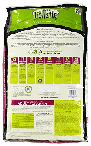 -. Binding : Misc. -. Brand : Precise -. Department : dog-dry-food -. EAN : 0072693396609 -. Feature : It features L-Carnitine for increased energy and glucosamine and chondroitin for healthy articular cartilage / This small and medium breed formula combines quality, wholesome ingredients and cutting edge extras to make exceptionally healthy food that will provide your cutie all he needs for a long, healthy life / This makes your puppies be full of energy and playful enthusiastic pet -. Label : Phillips Feed & Pet Supply -. Manufacturer : Phillips Feed & Pet Supply -. Model : PRE39660 -. MPN : PRE39660 -. NumberOfItems : 1 -. PackageQuantity : 1 -. PartNumber : PRE39660 -. ProductGroup : Pet Products -. ProductTypeName : PET_SUPPLIES -. Publisher : Phillips Feed & Pet Supply -. ReleaseDate : 2013-07-23 -. Size : 30 lb Bag -. Studio : Phillips Feed & Pet Supply -. Title : Precise 726323 Holistic Complete Small/Medium Breed Adult Dog Food, 30-Pound -. UPC : 072693396609