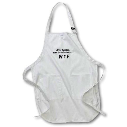 3dRose After Tuesday, Even The Calendar Says W T F - Full Length Apron, 22 by 30-Inch, black, with Pockets (apr_163970_4)