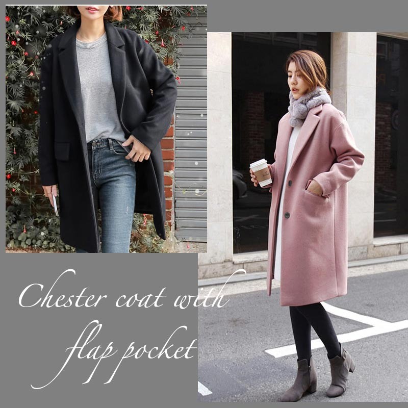 トレンド感満載のフラップポケットデザインのチェスターコート♪