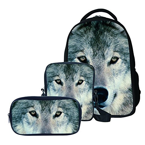 -. Title : Animals Wolf P.R.Inting Children School Book Bag Kids P.R.Inting Backpacks 3PCS Set