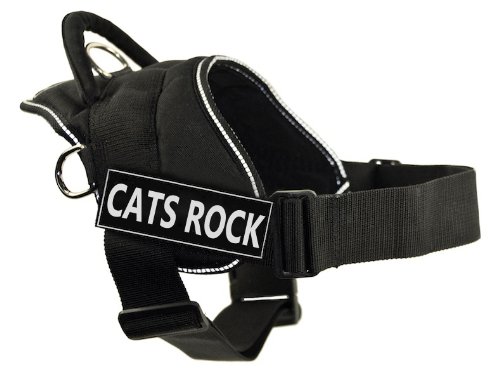 DT Fun Harness, Cats Rock, Black With Reflective Trim, X-Small - Fits Girth Size: 20-Inch to 23-Inch